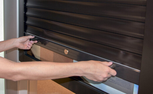 Выполняет функции защиты витрин уличных магазинов от вандалов и мародеров, но при этом этом есть вентиляция и проникает свет